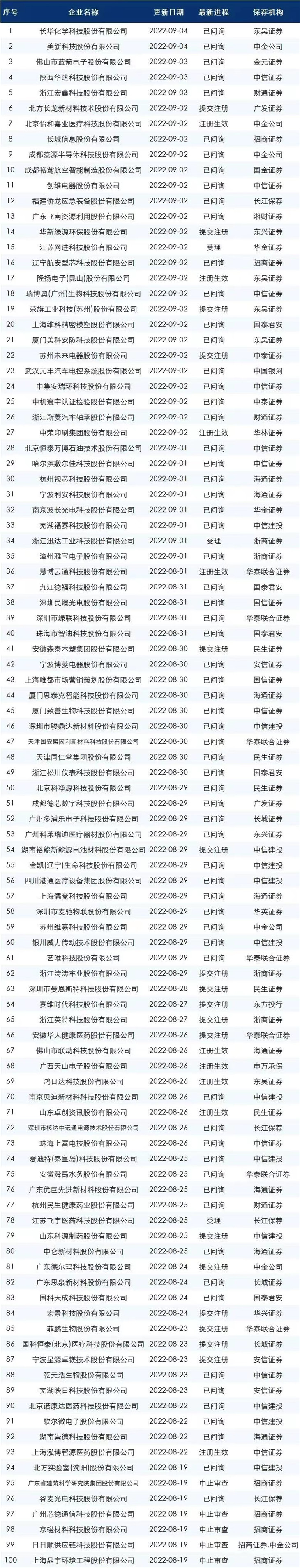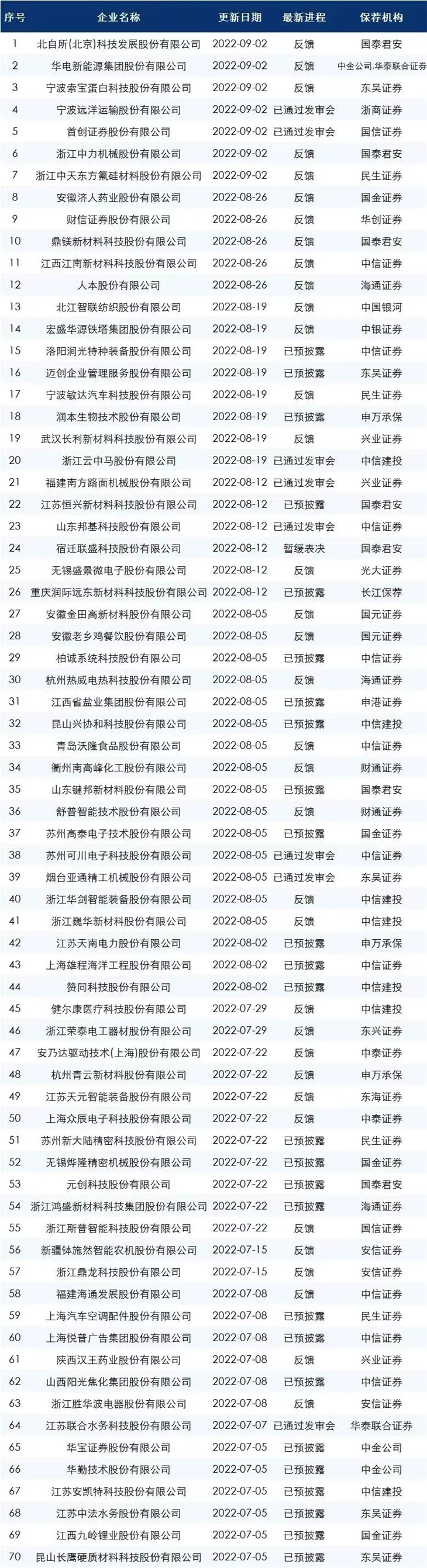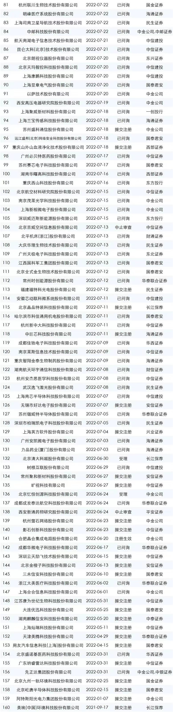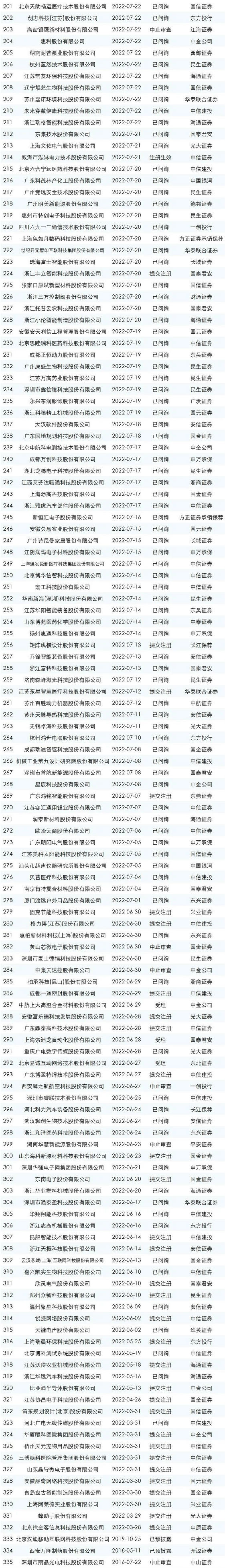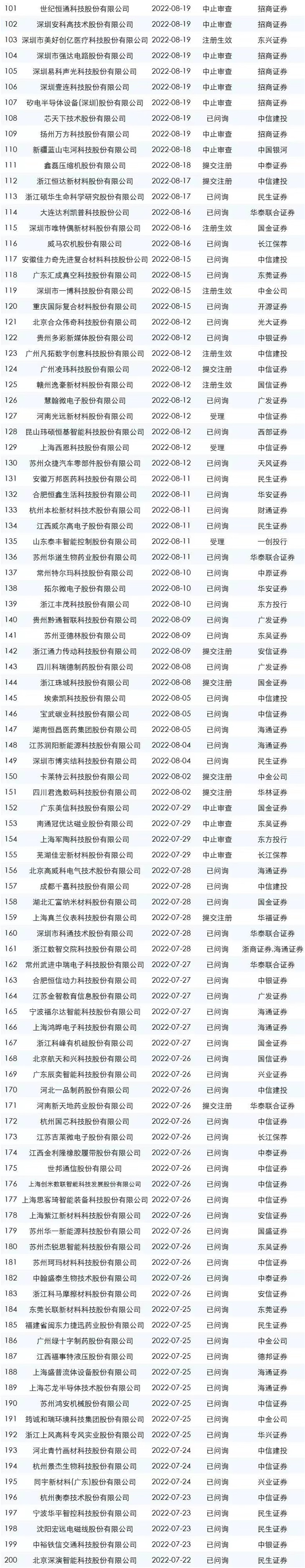 下面是最新的ipo排队名单