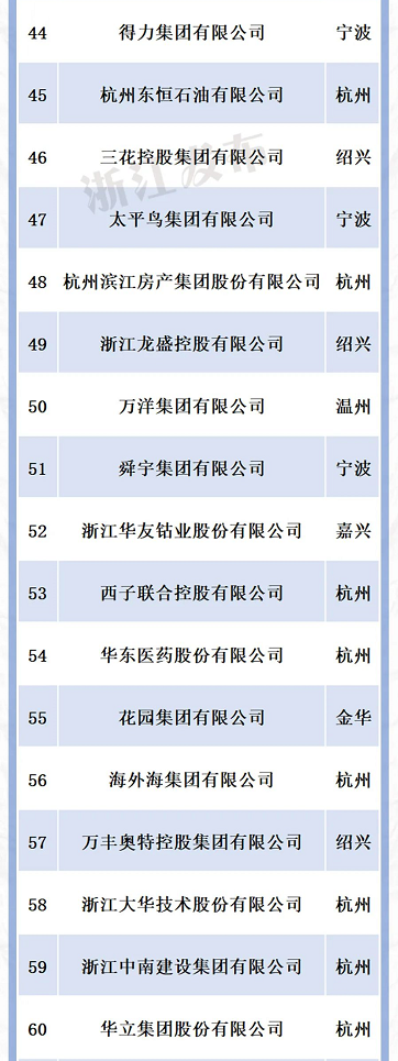 浙江省民营企业排行榜
