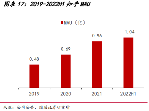 截止到2022H1,知乎月活用户已达1.04亿,是当前国内第五大综合内容社区。