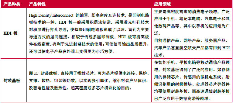 电子产品智能化、小型化和功能多样化发展,国内PCB 产品从中低端向高端迈进。PCB 产品分类方式多样,按照线路图层,可分为单面板(最基本,零件集中在其中一面,导线则集中在另一面)、双面板(绝缘基板两面均有导电图形)以及多层板(有四层或四层以上导电图形);按照产品结构,可以分为刚性版、挠性板、刚挠结合板、HDI 板、IC 封装板。据 Prismark,2020 年,多层板占比最高达 37.97%,挠性板和刚挠结合板次之占比 19.14%,IC 封装板和 HDI 板分别为 15.62%、15.26%,单双层板占比最低为 12.01%;据Prismark 预测,2025 年,HDI 板、IC 封装基板、挠性板及刚挠结合板市占率有望提升至 52.48%。国内 PCB产品相对集中在中低端,据 Prismark,2019 年多层板八层以下我国在全球占有率达 72%,但在 18 层以上电路板领域,我国全球占有率低于 32%。随着电子产品智能化、小型化和功能多样化发展,PCB 导线宽度、间距、微孔盘的直径和孔中心距离,以及导体层和绝缘层的厚度要求都在不断缩小,带动 PCB 中高端市场增长。