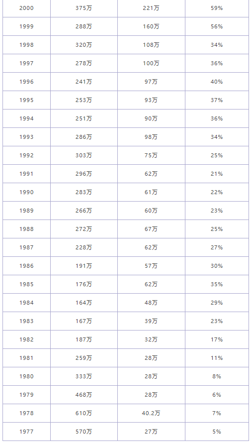 据权威数据统计,2021年全国高考人数为1078万人,2021年1078万人、2020年1071万人、2019年1031万人、2018年975万人、2017年940万人、2016年940万人、2015年942万人、2014年939万人、2013年912万人、2012年915万人.....