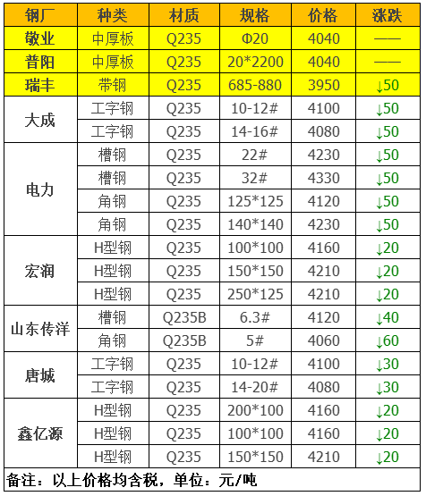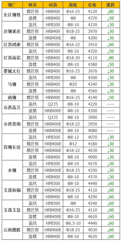 下面为废钢调价信息