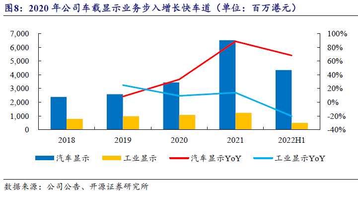 2022Q2,公司的车载显示出货量及出货面积份额均已达到全球第一。