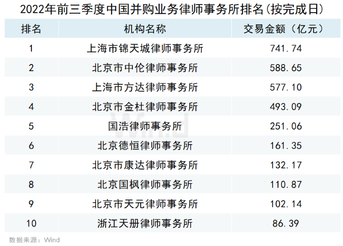 (4)中国并购市场律师事务所排名